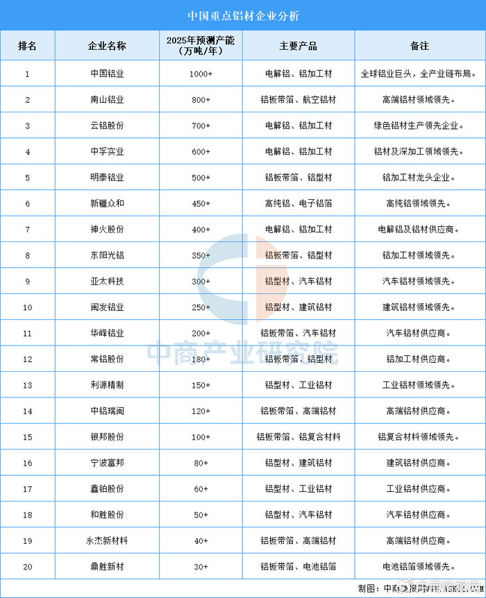 中商情报网讯:2025年,中国铝材行业将继续保持全球领先地位,中国铝业、南山铝业、云铝股份等龙头企业凭借技术优势和产能扩张,进一步巩固市场地位。随着新能源汽车、航空航天、建筑等领域对高端铝材需求的增长,铝材企业加速向高附加值产品转型,推动行业高质量发展。同时,绿色低碳生产技术的应用将助力中国铝材行业实现可持续发展,提升全球竞争力。