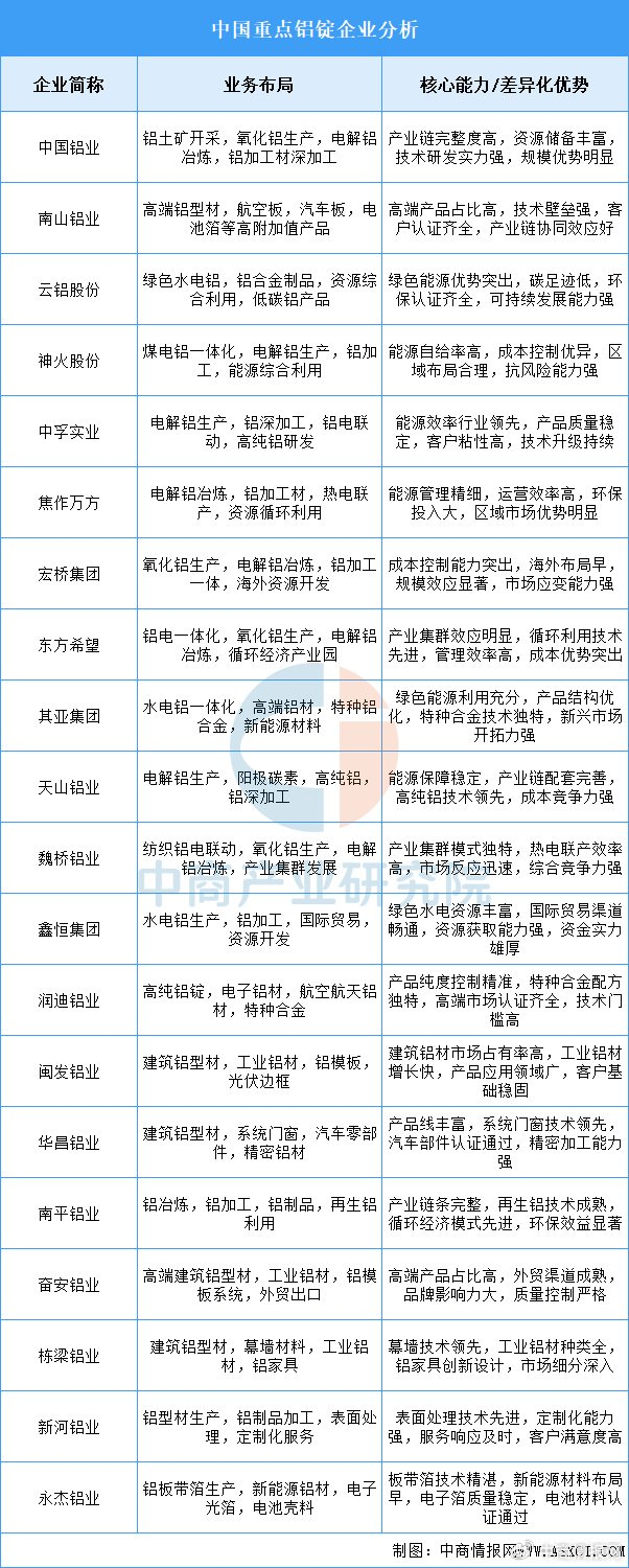 中商情报网讯:行业正经历从传统电解铝向绿色低碳、高端合金化方向转型升级,技术竞争聚焦节能降耗、再生铝利用及高纯铝制备,应用领域从建筑建材向新能源、航空航天等高附加值领域拓展。中国铝业以全产业链布局主导行业;南山铝业借高端加工技术巩固市场地位;云铝股份依托绿色水电铝优势实现差异化发展。