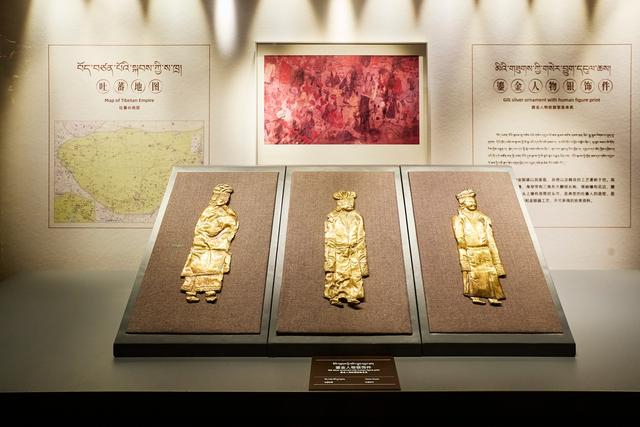 镀金人物银饰件来自吐蕃时期,这一时期吐蕃国力强大,手工业发达,制作出的金银器尤其精美,历年送给唐朝的贡品“财大气粗”,让大唐皇帝也开了眼,据说唐玄宗专为吐蕃金银器做了展览,将它们“列于提象门外,以示百僚”。