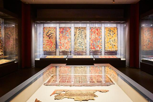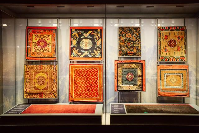 馆内有关于卡垫历史、原材料、染料等相关知识的详细介绍,展出的卡垫图案设计精美别致,色彩鲜艳,整体看上去华丽而大气。