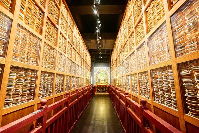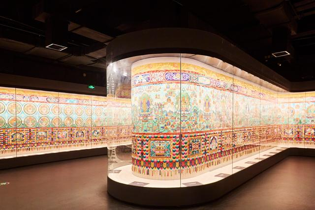 《中国藏族文化艺术彩绘大观》是馆内的“镇馆之宝”,全长618米,是世界上最长的唐卡长卷。走进展厅,巨幅长卷华美精致,如游龙蜿蜒曲折。绘画内容涉及历史、宗教、医学、艺术等,仿佛时光在身边缓缓流动。