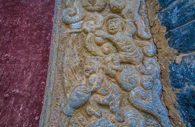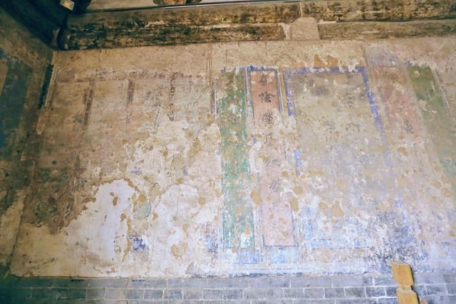 四周墙上的壁画已褪去了色彩,面目模糊,岁月带走了曾经的鲜艳夺目,又将斑驳叠加,将沧桑细细描绘。
