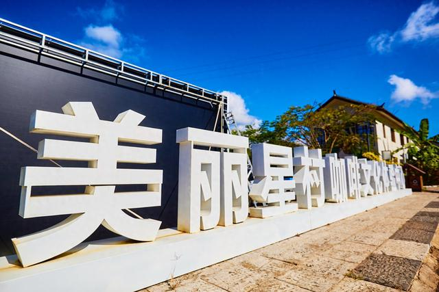 标语墙搭配卡通人物造型,背后是湛蓝天空,随手一拍就是充满童趣和治愈感的照片。