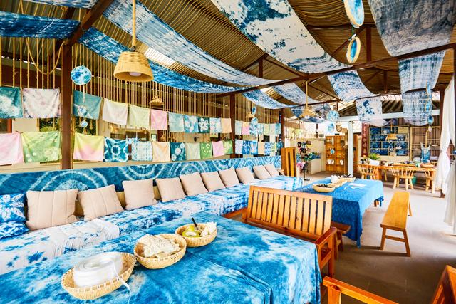 扎染工坊带着独特的染料味道,屋内各处都挂着蓝白相间的扎染布,长桌旁摆放着扎染工具和染料。走累了来工坊歇歇脚,亲手制作一块扎染方巾或包袋,体验古老的非遗技艺,制作出的成品还能带回家当纪念。