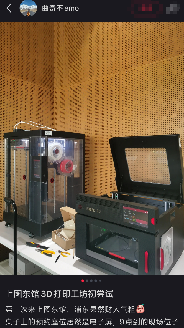 最懂薅羊毛的沪漂们,甚至早就把这里当成了“0元购”基地:图书馆里的 3D 打印工坊,尽管只能打印三小时内能完成的模型,但足够打工人给自己的耳机、手机壳定制个壳子,或者做个手机支架、杯垫之类的实用小物件。