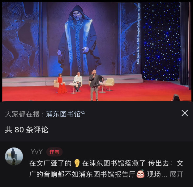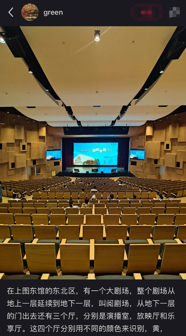 或是上海最出名的图书馆之一上图东馆里,不但有被大家当作免费影院的放映室,还有配套的剧院,会不定期举办公益演出。外面动辄上千元的 VIP 座位,在这里只要来得早,就能白嫖到正中那一排。