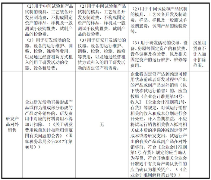 对于研发费用中直接投入费用归集口径及研发产品对外销售口径比较情况如下: