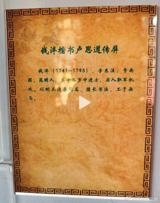 在“钱沣楷书卢思道传屏”的拓片前,沈巍如逢故友,因为这个钱沣就是他前几天在昙华寺公园专门为其喊麦的“那个老头”——钱南园。