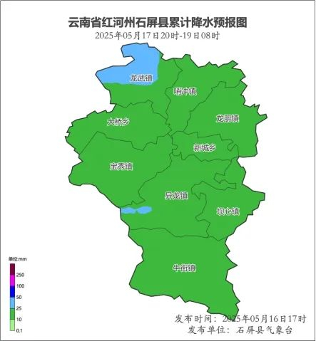 图1 2025年5月17日20时~5月19日08时石屏县累计降雨量预报图(单位:毫米)二、降雨天气特点及建议