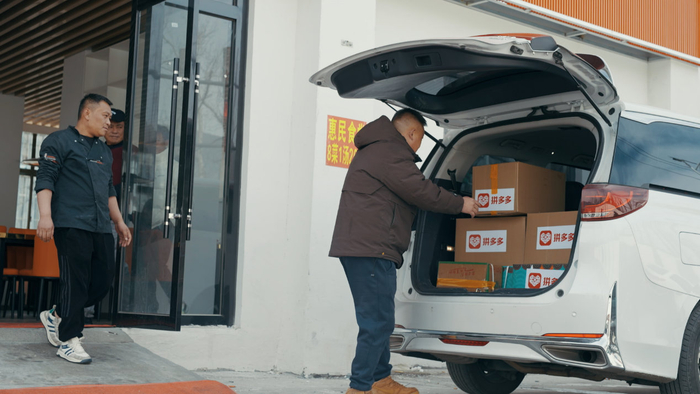 就在几天前,普玉虎第一次尝试在拼多多购买土豆,“拼多多上的价格是一斤1.5元,菜市场大概是2元多一点。”如今,他的后厨里,拼多多包裹与本地鲜货各占一半。耐储存的干货、冻品通过“中转集运包邮”模式,从西安中转仓统一配送至拉萨,平台承担二段运费。这一政策让商家与消费者都无需额外负担偏远地区物流成本,也让普玉虎的采购成本直降25%-30%。