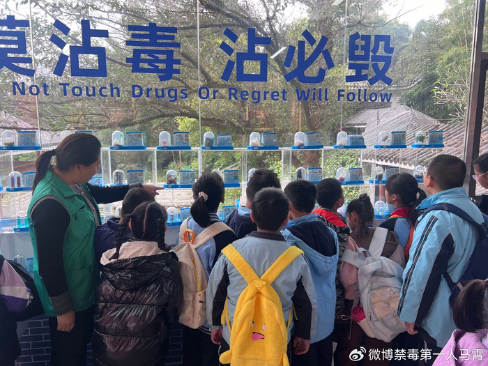 活动开始,学生们满怀着好奇与期待,在禁毒工作人员及老师的带领下有序的踏入了禁毒主题公园的大门。进入公园后,工作人员对公园内禁毒历程、禁毒政策、禁毒知识、吸毒危害、毒品预防教育等多个宣传专栏进行详细生动的讲解,全方位向同学们介绍禁毒知识。在仿真毒品展示区,同学们认真观察各类毒品原植物、合成毒品形态,工作人员详细介绍了毒品种类、特征、危害及识别方法,在图文展示区,一幅幅触目惊心的吸毒前后对比照片,一个个因毒致贫、家破人亡的真实案例,让学生们深刻认识到毒品对个人、家庭和社会的巨大危害。随后,工作人员叮嘱学生们参观结束后,要将此次参观学习的感受和所得与家人、朋友分享,提示劝诫亲朋好友共同抵制毒品诱惑,珍爱生命,远离毒品。