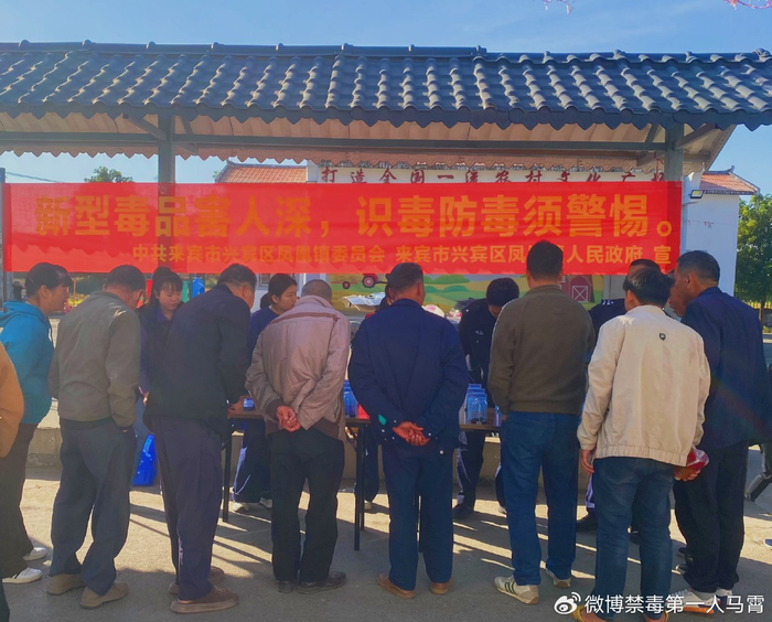 为进一步加大禁毒宣传力度,增强村民禁毒意识,整体推进农村禁毒宣传教育全覆盖,帮助村民认识新型毒品危害,提高识毒、拒毒、防毒能力。近日,来宾市兴宾区凤凰镇政府组织凤凰镇禁毒工作站、凤凰派出所、新隆村委干部到新隆村委龙旺村开展禁毒宣传进村屯活动。