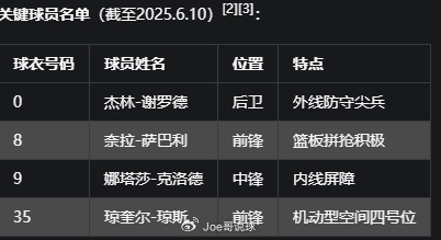 琼奎尔-琼斯(35号):琼奎尔·琼斯不仅是纽约自由人2024年首冠的FMVP核心功臣,更是串联WNBA与WCBA商业价值的全球化标志性球员。其兼具传统中锋硬度与空间型四号位技术的全能打法,正推动女子篮球战术体系的革新。