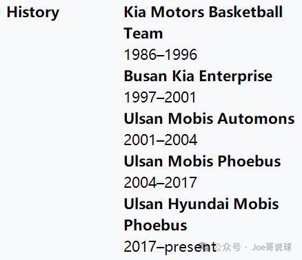 球队的前身是起亚汽车篮球队,后续又改名为釜山起亚篮球队,知道2001年,球队搬家到了蔚山,后续基本稳定下来叫做蔚山现代摩比斯太阳神队,比较巧合的是,蔚山足球队也是现代赞助的,不过蔚山现代足球队是现代重工造船厂赞助的,而篮球队是汽车厂赞助的。