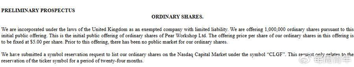 2024年12月19日,来自贵州盘州市的中志浩刺梨工坊的控股公司CILI WORKSHOP/PEAR WORKSHOP(以下简称“刺梨工坊”)在美国证券交易委员会(SEC)递交招股书,股票代码CLGF,拟在美国纳斯达克IPO上市。