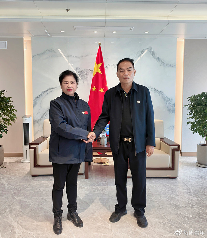 图为韩健光主席与韩梅女士交流的合照