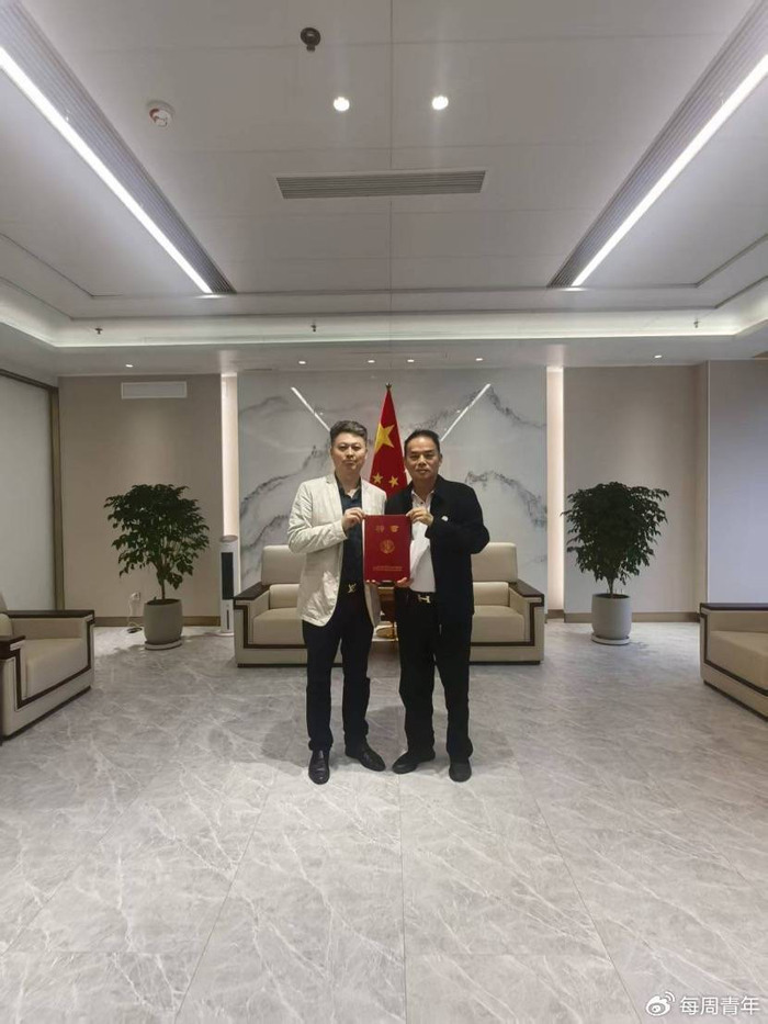 图为:聘任杨春峰为世界华商联合总会山东分会副会长