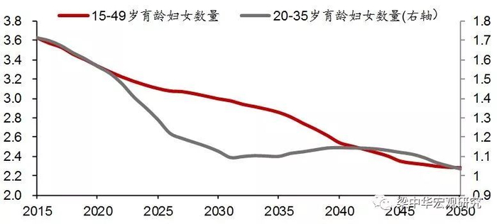新生婴儿数量的减少和育龄妇女数量锐减有很大关系,根据我们的测算,2018年我国15-49岁的育龄妇女数量可能减少了700万以上(这一结果与统计局公布结果一致),预计2019-2021年也将每年减少600万左右,尤其是20-35岁生育旺盛期的女性数量减少速度会更快。此外,女性受教育程度提高、生育意愿的下降等其他因素也对新出生人口构成拖累。