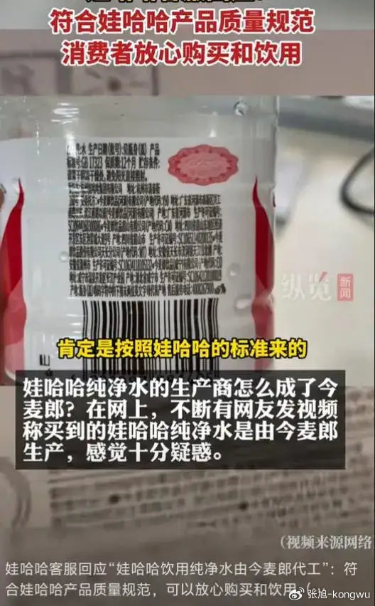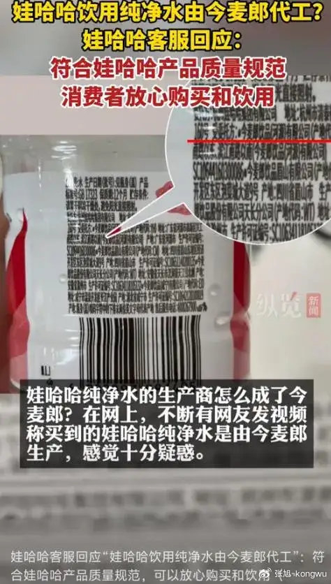 娃哈哈纯净水今麦郎代工?一时间成为舆论关注的焦点。