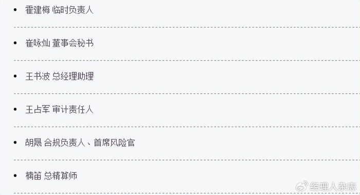 - 崔咏灿(董事会秘书):女,1984年出生,曾在宝能投资集团有限公司、宝能控股(中国)有限公司北京公司人力行政部担任重要职务,具备丰富的企业行政与人力管理经验。