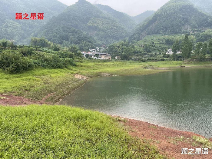 水库东岸有个小村落名叫大湾山村,是嵊州市石璜镇三溪村的一个自然村,临水而居,风光宜人,绿草苍苍,在水一方。