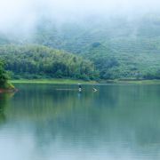 坂头水库地处石磺镇和谷来镇的交界地带,状如新月,亦称月亮湖。