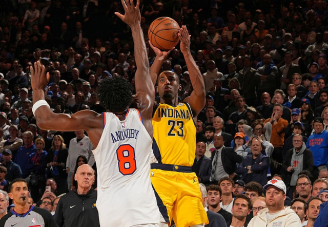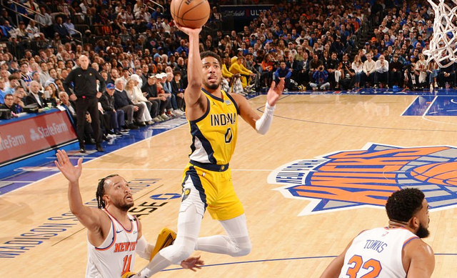 易边再战,阿奴诺比扣篮,哈利伯顿上篮得手,布伦森抛投得分,内姆布哈德、西亚卡姆连续突破内线得分,步行者把分差缩小到3分。布里奇斯、布伦森内线得手,托平反手上篮得分。布伦森领到第4次犯规,但没有被换下,随后他打成2+1。哈利伯顿三分命中,布伦森、麦克布莱德中投也中,麦康奈尔上篮得分。三节战罢,尼克斯90-87领先步行者。