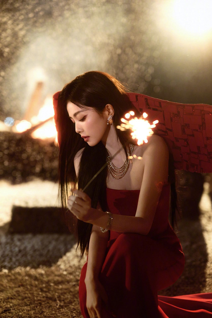 白鹿元旦写真大片,身穿Stéphane Rolland 2025 秋冬高级定制礼服开启2026 年,以红色点亮新岁序幕,寓意2026一路繁花、热烈启程。