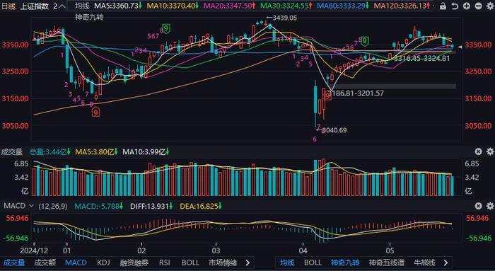 第一,从技术上看,上证指数自5月14日创出阶段新高后,进入调整阶段,虽然中途有涨有跌,但重心是在不断下移的,目前已经跌破多条均线,且MACD指标已经构成死叉,明显助跌信号,虽然下方仍有60日均线和半年线支撑,但市场整体弱势明显,一旦指数再继续下行,跌破中长期均线,抛压就会增大。