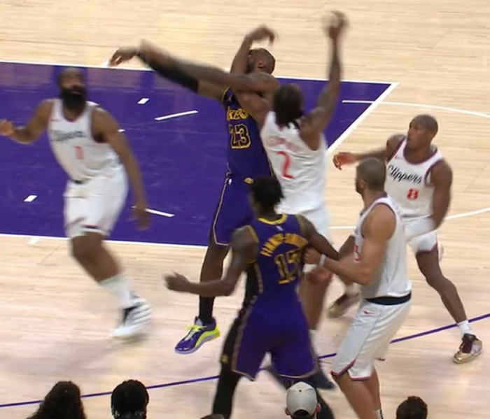湖人和快船比赛进行到第四节还剩16.6秒,湖人边线发球,詹姆斯接球瞬间被小卡撞倒,裁判吹罚小卡犯规,詹姆斯获得两次罚球机会,随后快船申请挑战,裁判多次回看录像后吹罚小卡先碰球,这次身体接触是“轻微的”,不足以构成犯规,随后认定挑战成功,快船获得最后一攻球权。