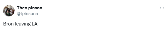 29岁的西奥-平森发推写道:勒布朗要离开洛杉矶湖人了;平森曾为篮网、尼克斯和独行侠效力,不过他已经离开NBA很久了,上一次打NBA已是2年前。