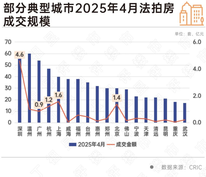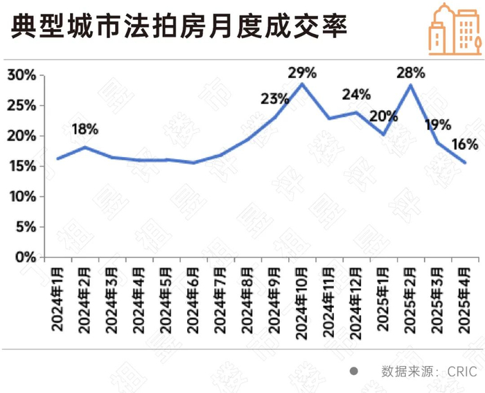 同时,据CRIC抽样调查数据,4月法拍房成交率16%,为2025年至今最低。法拍房交易热度整体回落。
