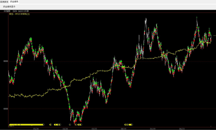 本策略是趋势策略,结合均线系统和波动率,进场稍晚,抓大行情,比小震荡,止损小,盈利一直持有,适用于大部分行情,仅在特定区间内来回摆动时会有小幅亏损。平均每个月交易12-13笔,胜率59%,适合大部分投资者。本策略仅限于在PP品种3分钟周期上使用,最大开仓手数为3手。