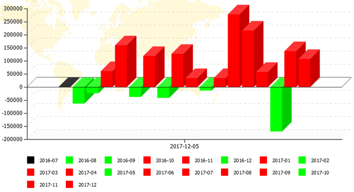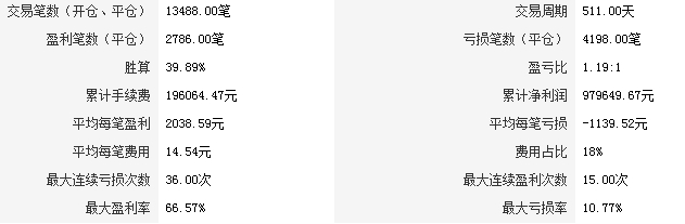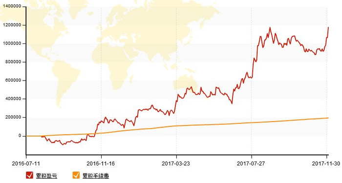 2016年8月2日至2017年12月4日,在本金最大风险4.3%,利润回撤最大10.77%的风险下,实现累积净值1.58的业绩,累积净利润98万,当前权益348万。