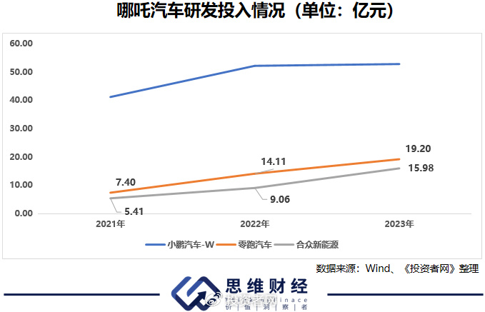 同时,哪吒汽车在研发上投入上的吝啬,也造成公司产品缺乏竞争力,未能与比亚迪、零跑汽车等竞争对手形成有差异化的竞争优势。2023年,合众新能源15.98亿元的研发投入,不仅远低于比亚迪395.75亿元、蔚来134.31亿元的规模,甚至不及零跑汽车19.20亿元的投入。2021年、2022年,哪吒汽车的研发投入更是仅有5.41亿元与9.06亿元,研发投入也低于零跑汽车。