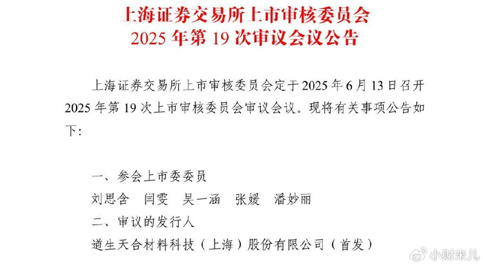 道生天合材料科技(上海)股份有限公司(以下简称道生天合)2023年06月20日开始正式排队上交所主板IPO,接近两年。上交所上市审核委员会定于2025年6月13日召开2025 年第19次审议会议,正式审议道生天合的IPO申请。
