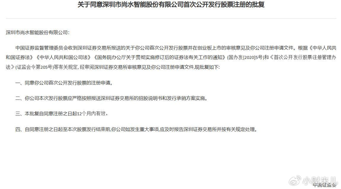 小财米注意到,2026年1月15日,证监会网站披露,同意创业板企业深圳市尚水智能股份有限公司的首次公开发行股票注册的批复。