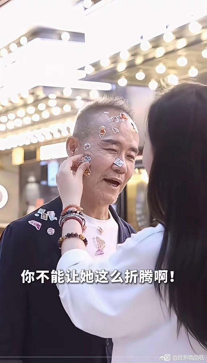 王石老来得女,对女儿宠得不行。女儿在他脸上、手上贴贴纸。