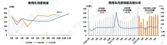 在乘用车领域,10月产销量分别为233.4万辆和223.1万辆,环比分别下降增长3.1%和4.3%,同比分别增长16.9%和10.7%。