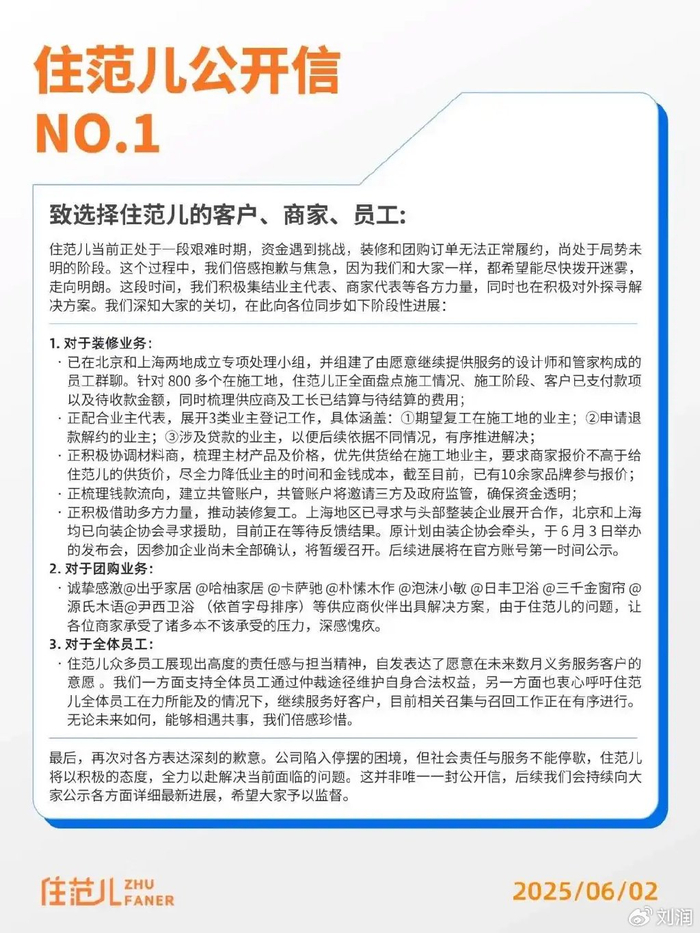 又过了几天,住范儿官方发布了公开信,承认公司陷入停摆困境。