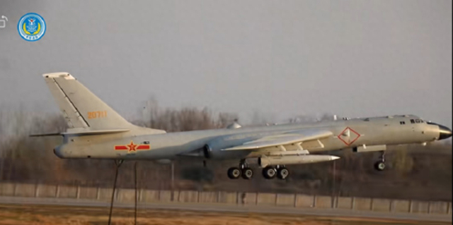 从东部战区公布的画面来看,至少一架轰-6K挂载2枚鹰击-21实弹升空参与演习,之所以断定应该是实弹而非训练弹,主要是因为弹体为普通的灰色涂装,而训练弹通常会带有橘黄色标识条。