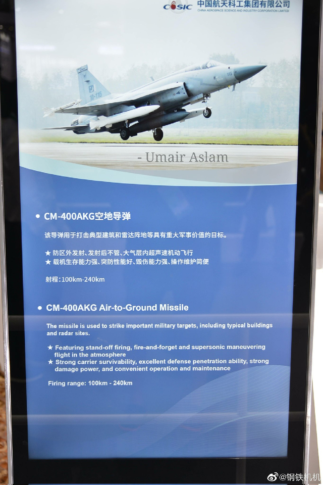 5月10日凌晨,巴基斯坦宣布启动“铜墙铁壁”军事打击行动,鉴于印度再度对巴境内多处军事目标实施导弹攻击,巴军开始对印度实施报复性打击。巴空军出动JF-17“枭龙”系列战斗机,发射CM-400AKG超音速空地导弹成功摧毁印度境内部署的俄制S-400防空系统。CM-400AKG导弹素有“航母杀手”之称,素来被印度所忌惮!