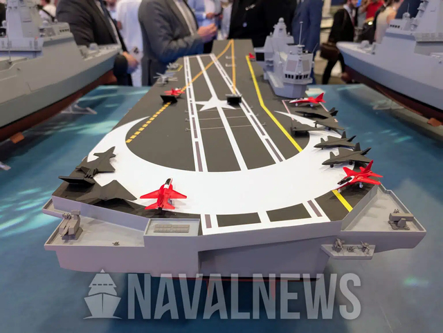 从目前展出的模型来看,土耳其这款航母采用了滑跃起飞的技术路线,同时配备有斜角甲板。