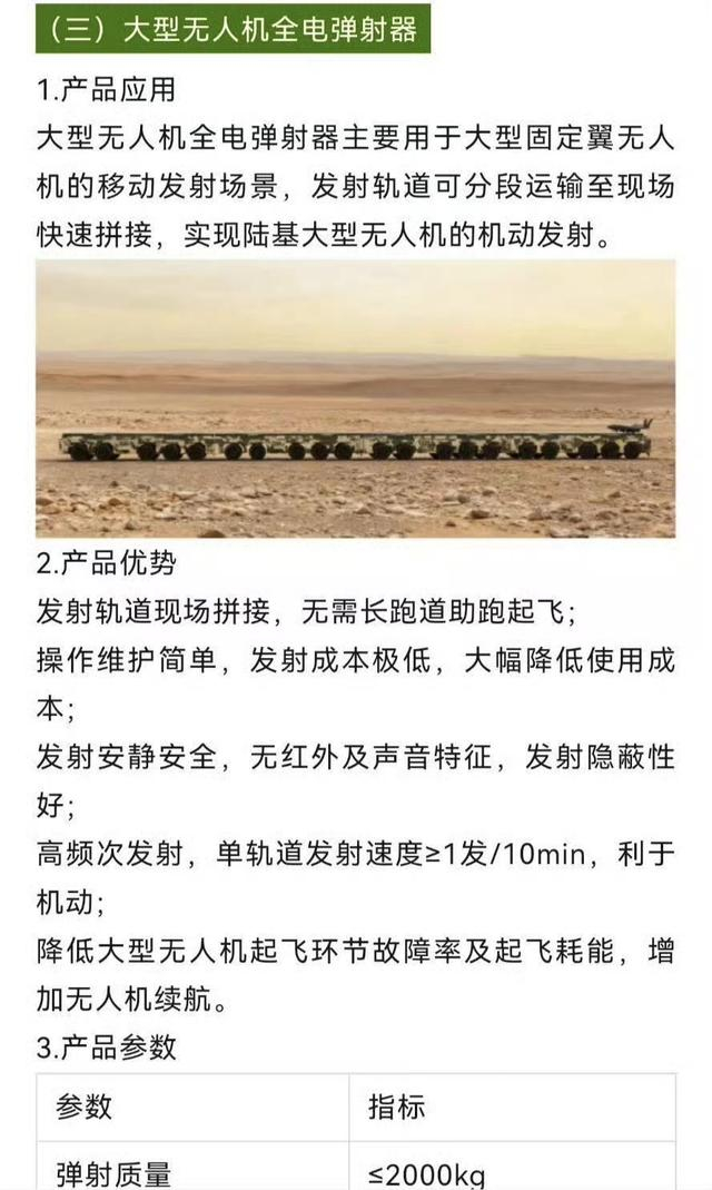 此次曝光的大型无人机全电弹射器,用实打实的性能参数重塑了行业认知。其最鲜明的特质是极度模块化:三辆八轮卡车首尾衔接,车顶即可拼接成完整弹射轨道。这意味着传统跑道与航母甲板的限制被彻底打破,任一平地或船舶甲板,都能快速转化为作战发射点。
