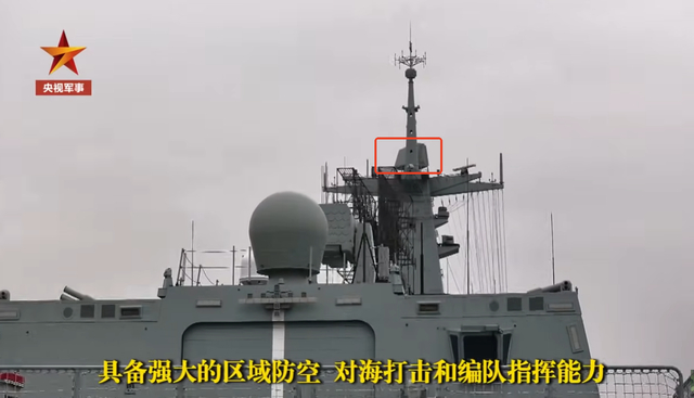 图:桅杆顶部的双面有源阵而这款新雷达的探测和引导距离更远,多目标处理能力更强,大幅提升了舰艇应对超低空来袭反舰导弹的能力。同时其对隐身目标的探测能力也比老雷达更强,所以升级后,该批次舰艇应对美军LRSAM隐身反舰导弹的能力也更强。