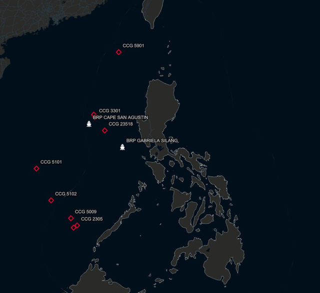 而与此同时,海警3301舰和23518艇则在黄岩岛附近海域“死死盯住”菲方企图侵闯黄岩岛的 “圣奥古斯丁角”号(BRP Cape San Agustin)巡视船。此外,包括海警5102舰、5009舰和2305舰则在巴拉望岛以西构成警戒支点。