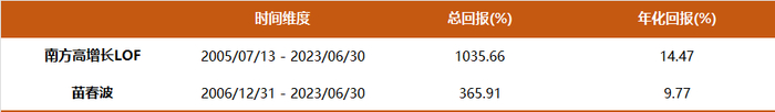 如果从苗春波首次进入前十大持有人的2006年年末算起,到现在16年多的时间内,南方高增长取得了365.71%的总回报,年化收益9.77%。