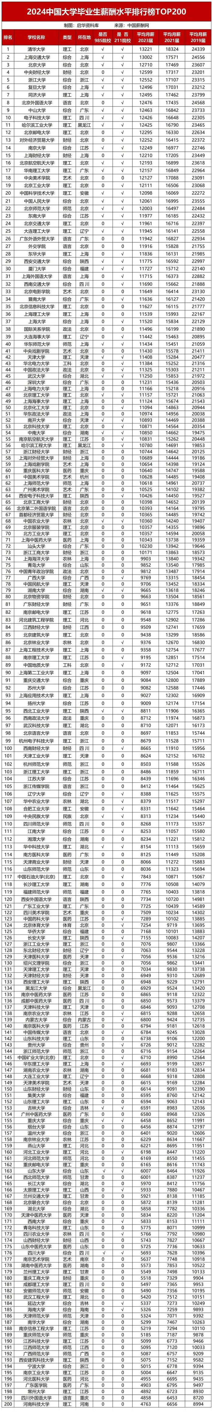 榜单显示,清华大学、上海交通大学、北京大学位列前三,中央财经大学第四,浙江大学、复旦大学、同济大学紧随其后。从平均薪酬来看,有50所高校的毕业生平均月薪超过11000元,73所院校超过10000元。清华大学以13221元的平均月薪位居榜首,而西南财经大学以8665元排在第100位,河南科技大学以4763元排在200位,整体薪资水平较去年有所提升。