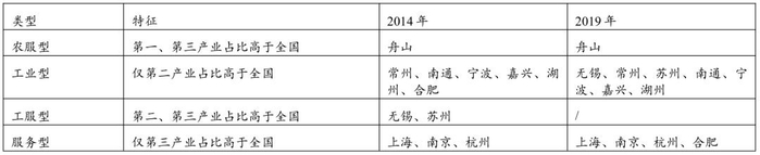 在《产业篇》2018报告中,我们将各地区按产业结构归为六个类型:农业型、农服型、工农型、工业型、工服型、服务型,通过各地区所属的产业类别描述地区的主要驱动产业,长三角地区涉及类型包括农服型、工业型、工服型、服务型。对比2018年,2019年12市产业结构类型没有变化,而对比2014年,无锡、苏州和合肥产业结构类型发生了变化,具体为苏州、无锡由工服型城市转变为工业型城市,合肥由工业型城市转变为服务型城市,主要原因是近几年合肥第三产业发展迅猛,增速远高于全国,苏州和无锡工业发展较快。