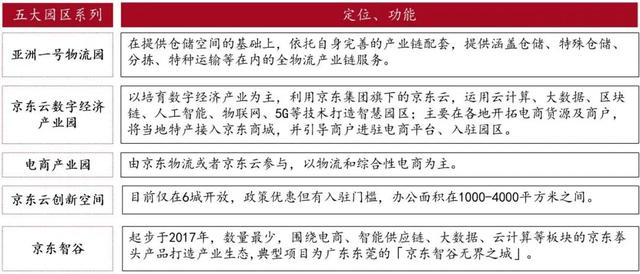 图3:行业龙头企业案例:京东五大园区产品线,全国布局产业园